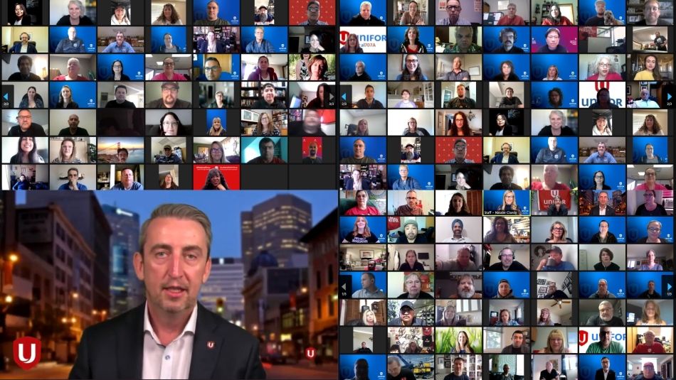 Unifor Western Regional Director Gavin McGarrigle on a Zoom with members