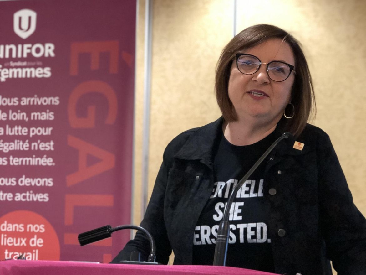« Bienvenue à la collectivité des femmes d’Unifor. Ce mouvement est rempli de femmes syndicalistes qui savent que notre pouvoir ne vient pas seulement de la force de notre syndicat, mais aussi de nos liens en tant que femmes », a déclaré Lana Payne, soulignant la nature collective du militantisme syndical féministe du Canada.