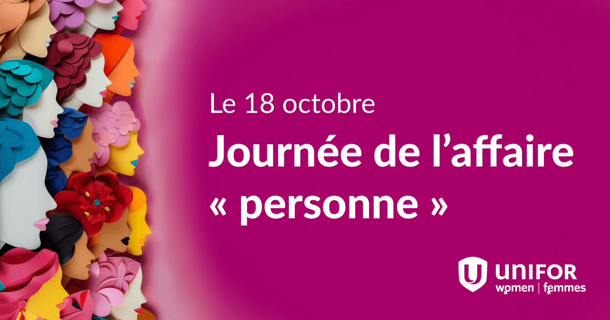 Le 18 octobre, le Canada commémore la Journée de l'affaire « personne ». En tant que syndicalistes, nous soulignons cette journée en gardant à l’esprit que la lutte pour l’égalité des genres est fondamentale pour garantir la justice pour toutes les travailleuses. Aujourd’hui, nous célébrons les victoires historiques des militantes, dont un nombre incalculable de membres syndicales, dont l’héritage constitue le fondement sur lequel nous continuons de bâtir nos succès actuels.