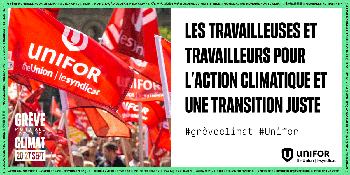 Les déléguées et délégués à notre congrès statutaire du mois d'août ont adopté à l'unanimité une résolution appuyant la Semaine mondiale d'action pour le climat qui aura lieu du 20 au 27 septembre 2019. Les sections locales d’Unifor sont encouragées à prendre part à ces événements importants.