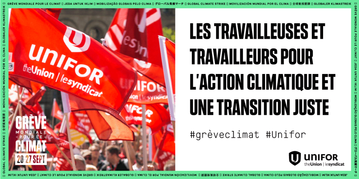 - Jetez un coup d’œil au site Web de la Grève mondiale pour le climat pour connaître les événements près de chez vous. Participez et encouragez les membres d’Unifor et les militantes et militantes à vous accompagner.