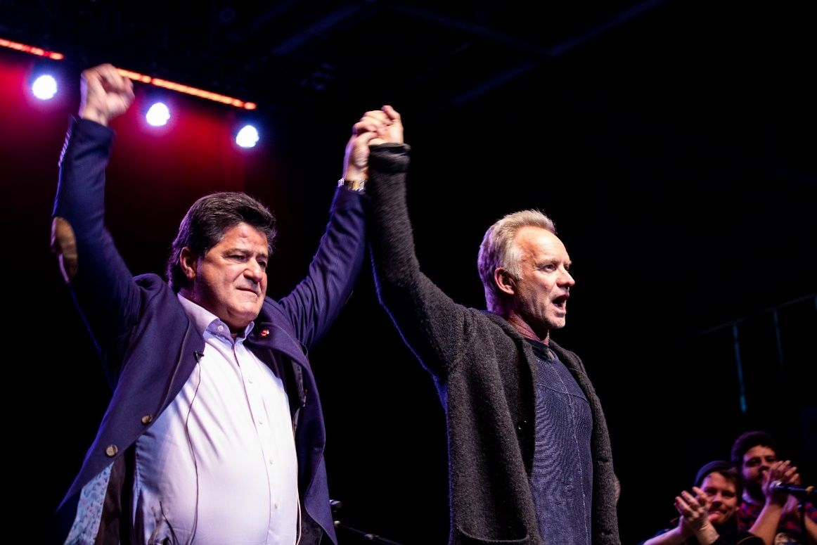 Des milliers de membres d’Unifor et du public ont assisté à cette performance présentée le jour de la St-Valentin au cœur du centre-ville d’Oshawa. Le musicien légendaire a d’abord interprété « Message in a Bottle », puis, après plusieurs autres chansons de la pièce de théâtre musicale, a terminé par « Every Breath You Take ».