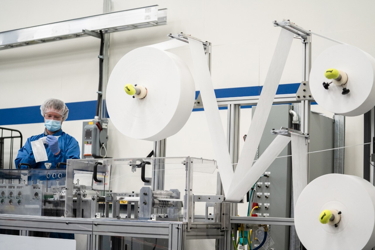 Environ 60 membres de la section locale 222 d'Unifor travaillent actuellement en deux équipes pour fabriquer les masques de qualité chirurgicale et continueront à travailler tout au long de l'année pour fournir au personnel de première ligne dans le secteur de la santé une source régulière et fiable de cet équipement de protection individuelle nécessaire.