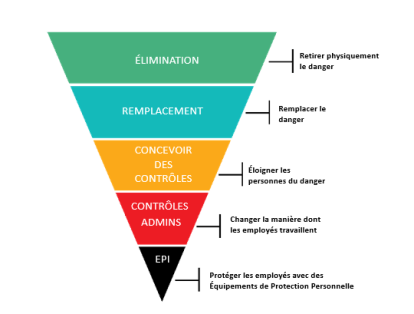 Le contrôle de l'exposition aux risques professionnels est la méthode fondamentale de protection des travailleuses et travailleurs. L'utilisation d'une hiérarchie de contrôle est un moyen de déterminer comment mettre en couvre des solutions de contrôle réalisables et efficaces.