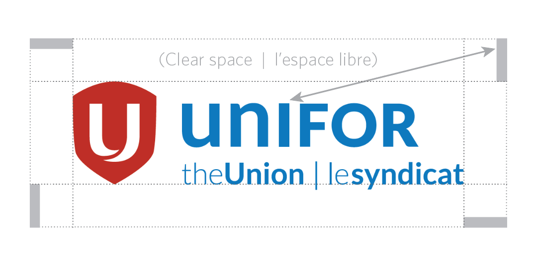 Each identity file provided includes the necessary clear space within the image. Follow the identity’s clear space guidelines to prevent compromising the visibility of the Unifor identity.