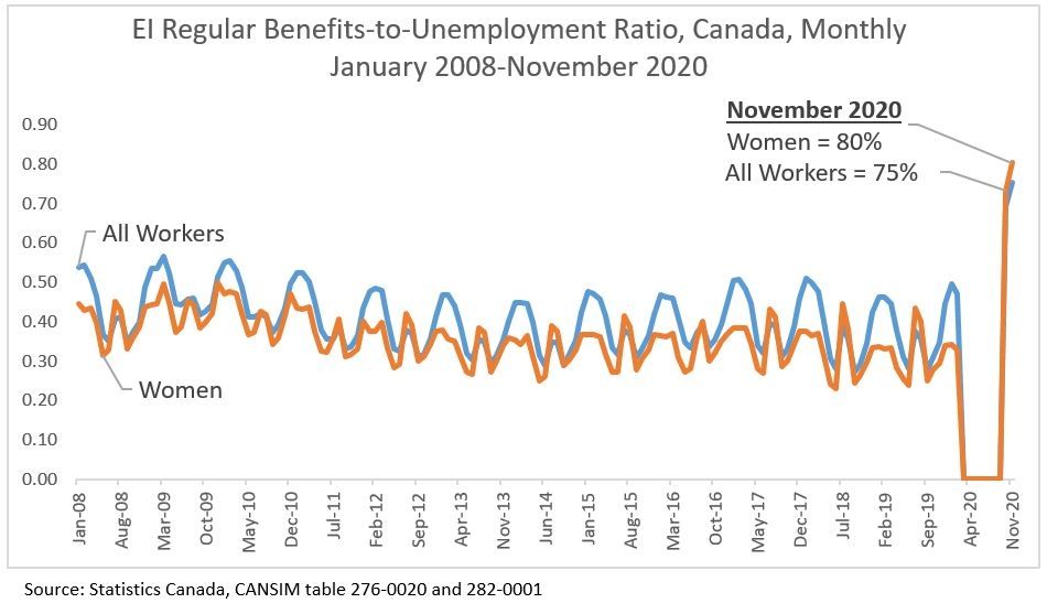 It is unimaginable to think how the existing EI system could have carried workers through this pandemic, not when it effectively disqualifies more than half of unemployed workers (and nearly three-quarters of low-wage workers) from receiving even a nickel in income support.