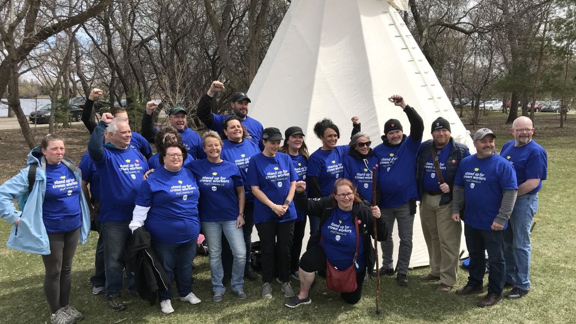 Hundreds of Unifor members and supporters gathered at Wascana Park to send a message to the Scott Moe government that Crown corporation workers reject austerity and have earned a fair contract.