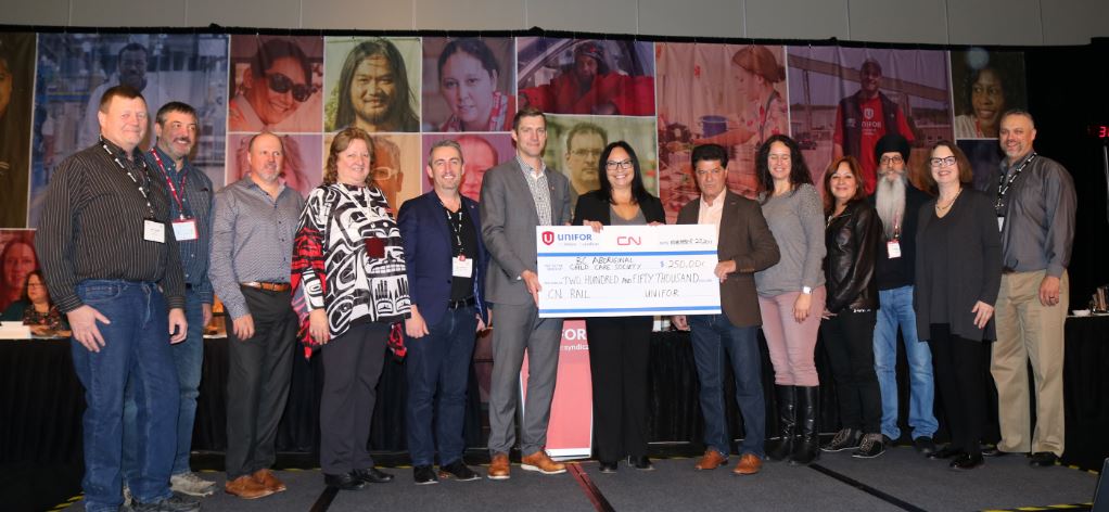 Unifor backed up its commitment to Reconciliation with a $250,000 donation to the B.C. Aboriginal Child Care Society (BCACCS) made jointly by the Unifor Social Justice Fund and CN Rail. The funds will be used to expand an innovative speech and language development program for children across Canada.