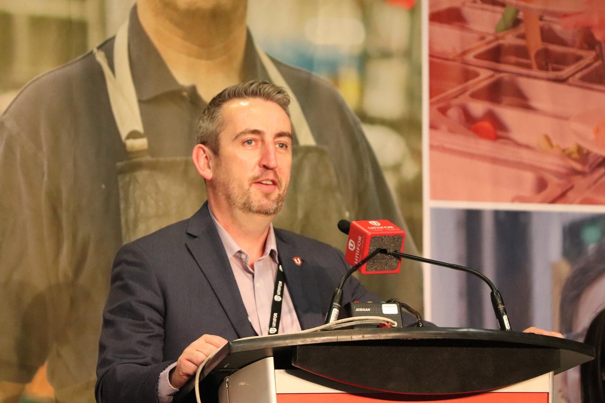 “Our member organizers came together, trained, learned how to work together…they volunteered their hearts out in targeted ridings, multiple times each week,” McGarrigle told delegates. “Unifor was there in force and we continued for every day of the campaign, speaking to our members, visiting workplaces, and volunteering.”