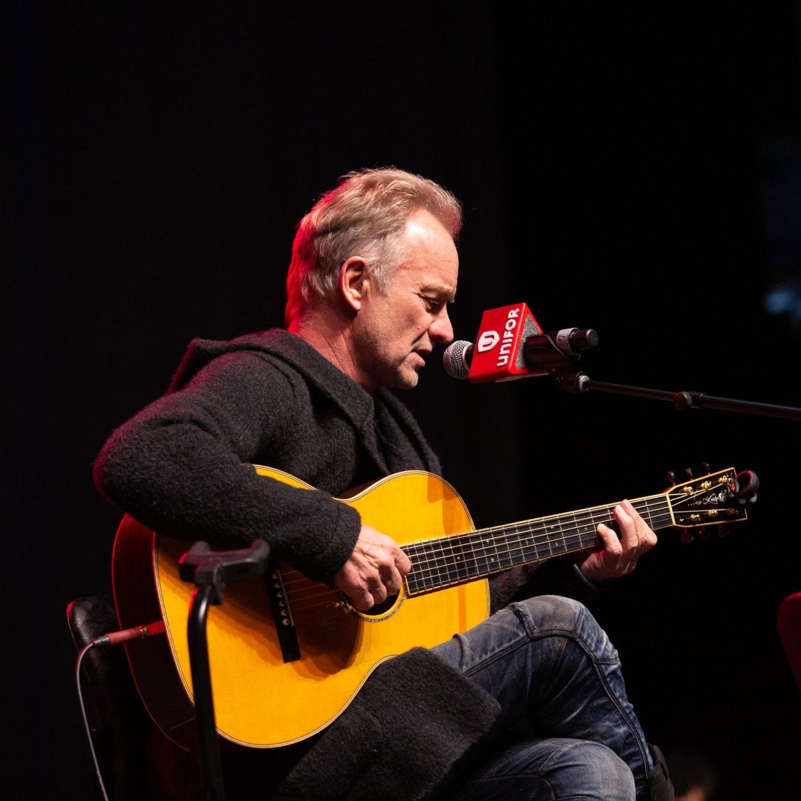 Thousands of Unifor members and the public attended the Valentine’s Day solidarity performance, held in the heart of downtown Oshawa. The legendary musician began with “Message in a Bottle,” and after several numbers from the musical, closed with “Every Breath You Take.”