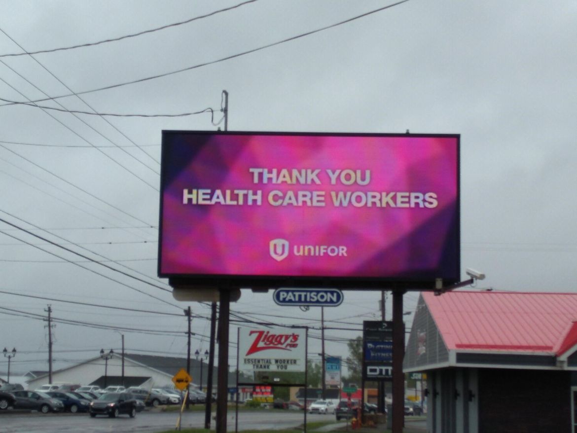 Beginning in early June, billboards went up in the Halifax and Sydney areas to thank health care workers. This week, members at Northwood received sweatshirts funded jointly by the Unifor Atlantic Council, CUPE, NSGEU and NSNU.