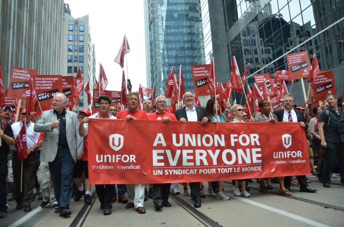 In a rousing display of what Unifor will become, members marched in Toronto on August 30 in support of Canadian telecommunications jobs.