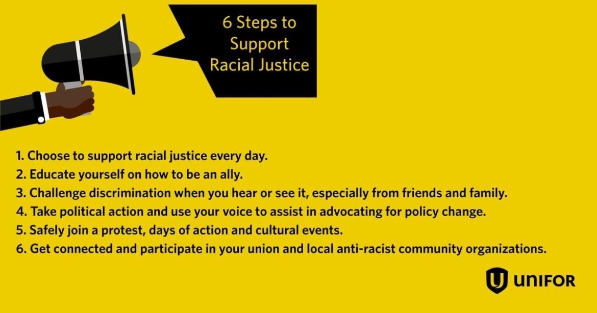 The trade union movement was built by working people determined to bring fairness and justice to our workplaces and our communities. Our greatest progress has come when we have understood the importance of combating discrimination and uniting all workers regardless of race. Unifor continues that tradition and is committed to using our bargaining power, people power, and political power to bring about racial justice.