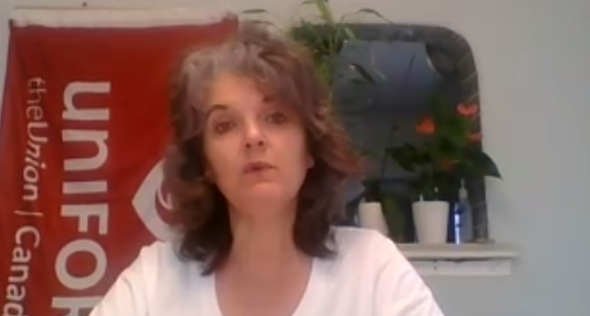 Jen Shields, a special needs education assistant in Calgary from Unifor Local 1990, described how the many cutbacks in education became magnified during COVID-19. In Alberta, 16,000 education workers laid off, 1,500 from her Local.She said with the cold snaps of -30C Alberta weather, educators couldn’t take kids outside and even though it was shown that transmission of the COVID-19 virus spread easier indoors, workers were not outfitted with proper PPE, but were still expected to teach in-class, oftentimes coming face-to-face with students who would lash out violently.